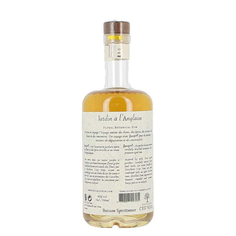 Le rhum jardin à l'anglaise est un rhum de 3 ans d'âge mélangé à des herbes et fleurs soigneusement sélectionnées. Ce rhum a été distillé en Normandie à partir de sucre de cannes des Caraïbes par l'équipe C'est Nous. Une distillerie de renom près de Caen. Ce rhum dit floral, est à la dégustation suave et équilibré. Il peut se consommer à l'état brut, sur glace ou encore en cocktail.
