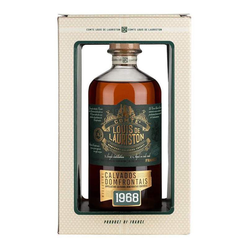 Ce Calvados millésime de la maison Comte Louis Lauriston a été distillé en 1968. Cette eau de vie de cidre est un Calvados Domfrontais.