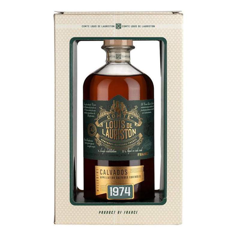 Ce Calvados millésime de la maison Comte Louis Lauriston a été distillé en 1974. Cette eau de vie de cidre est un Calvados Domfrontais.