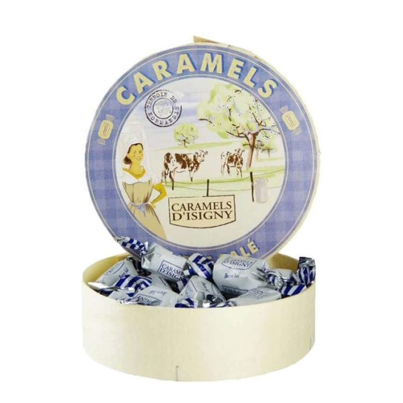 Pour les amateurs de caramels au beurre salé, ces caramels d'Isigny sont présentés dans une boîte fine en bois comme les Camemberts de Normandie, plutôt original pour faire un petit cadeau...