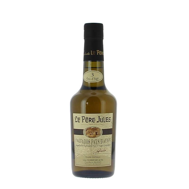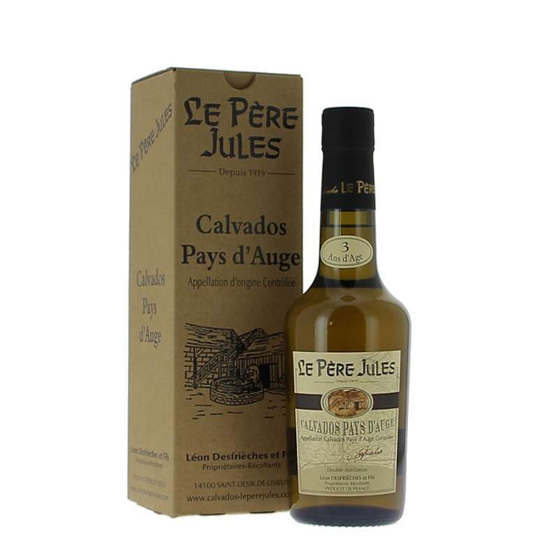 Cette demi bouteille de Calvados AOC Pays d'Auge de la maison le Père Jules est un jeune Calvados de 3 ans d'âge vieilli en fûts de chêne avec toute l'attention du maitre de chais. Note de pomme verte très claire à la dégustation.