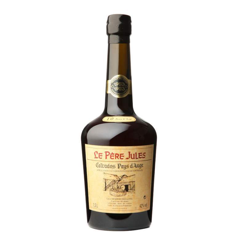 Un jeune Calvados AOC Pays d'Auge de la maison le Père Jules ayant vieilli 10 ans en fût de chêne. Ce magnum de Calvados est à la fois puissant et fin à la dégustation.