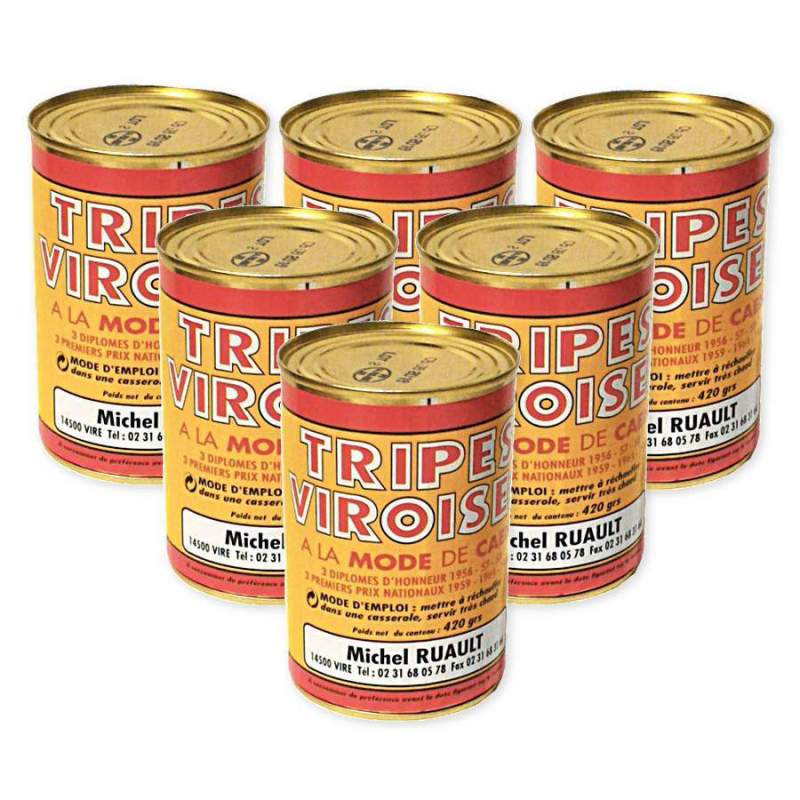 Tripes Viroises artisanales à la mode de Caen par lots 6 conserves boite métal 420g.